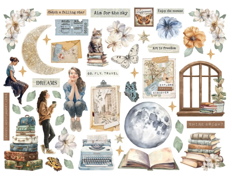 Богат комплект от разнообразни, предварително изрязани картонени елементи (die cuts) от колекцията „Secret Diary“ на Stamperia. Включва деликатни флорални мотиви, винтидж предмети и вдъхновяващи надписи, идеални за декорация на албуми и картички.